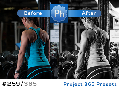 Hi folks! This is a photo from a fun session I had earlier this year. I made this one black and white to get those muscles pop out a little extra. Say hello to Lightroom preset number 259 of 365…