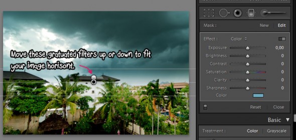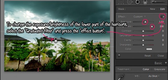 Your horizon might be on a different position in the photo. Luckily you can replace the graduated filters to fit your own horizon.