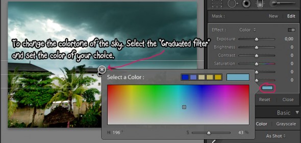 Graduated filters can be used with the same effects as the “Adjustmen Brush“. With this in mind I have added a blue color tone on the filter for the sky to make it more dramatic.